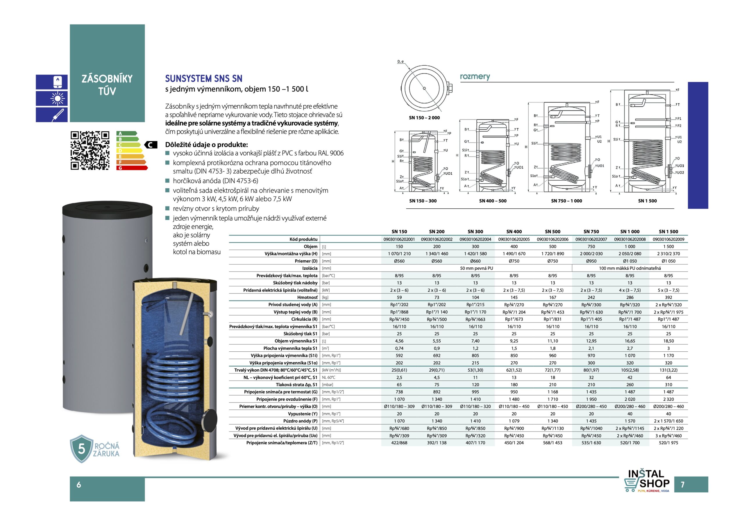 OHRIEVAČE TUV SUNSYSTEM SNS SN – s jedným výmenníkom, objem 150 – 1500 L