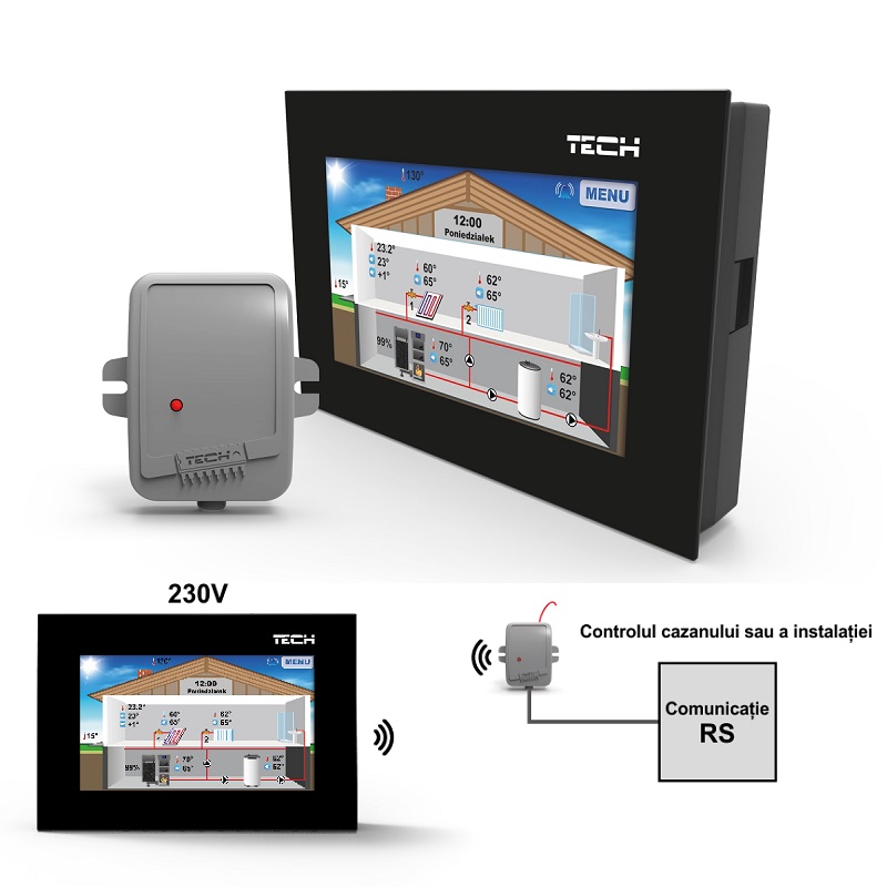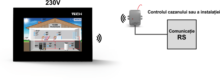 - zobrazenie aktuálnych priebehov teploty kotla a izbovej teploty