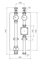 Do čerpadlovej skupiny bez obehového čerpadla je možné nainštalovať obehové čerpadlo od rôznych výrobcov so stavebnou dĺžkou 130 mm, pričom pripojenie čerpadla je zabezpečené pomocou prevlečnej matice s vnútorným závitom 1″.