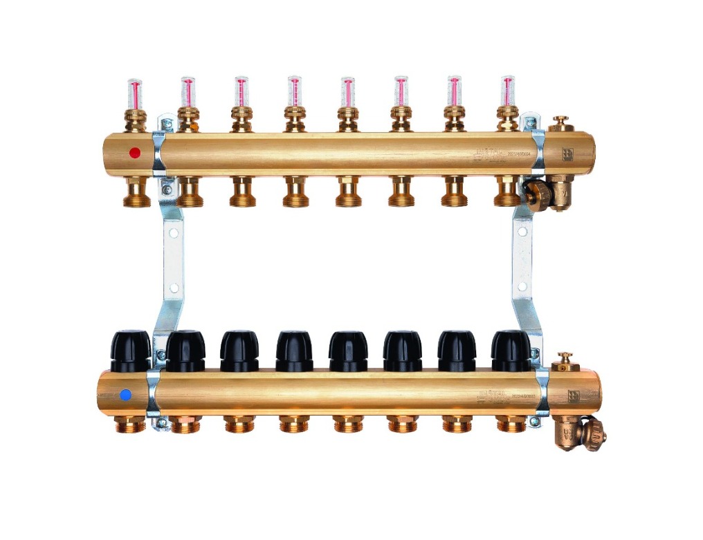 Rozdeľovač 15 okruhov mosadz s mechanickými prietokomermi 301.00