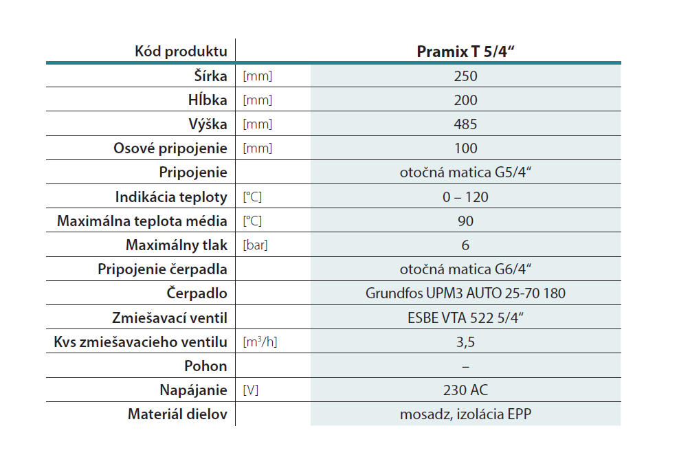 Čerpadlová skupina je navrhnutá pre vykurovacie systémy na pripojenie vykurovacieho okruhu, ktorý vyžaduje konštantnú teplotu vykurovacej vody nižšiu ako teplota vstupujúca zo zdroja tepla. Pomocou 3-cestného termostatického ventilu ESBE je možné dosiahnuť konštantnú teplotu média za čerpadlovou skupinou v rozsahu 20-43°C. Do čerpadlovej skupiny je možné namontovať obehové čerpadlo od rôznych výrobcov so stavebnou dĺžkou 180 mm. Pripojenie čerpadla zabezpečuje prevlečná matica s vnútorným závitom 6/4“. V čerpadlovej skupine s obehovým čerpadlom je inštalované čerpadlo s elektronicky regulovanými otáčkami Grundfos UPM 3 25/70. Vyhotovenie kompaktná, predmontovaná jednotka osadená do tvarovaného tepelnoizolačného obalu z EPP.