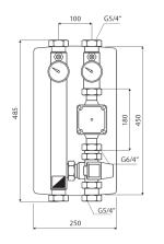 Obsahuje 1× čerpadlo,1× 3-cestný termostatický ventil, 2× guľový kohút, 2× teplomer, 1× spätná klapka, 2× jímka pre teplotné čidlo